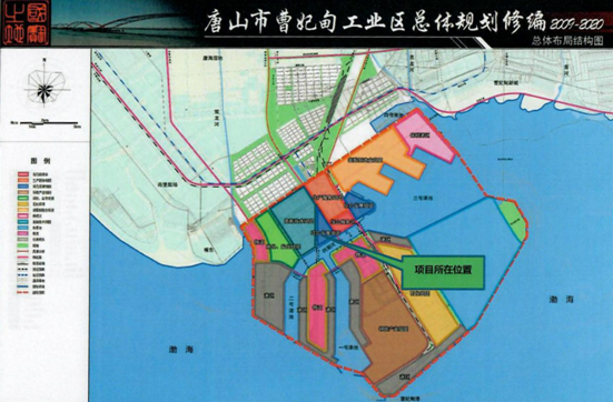 (上圖為曹妃甸工業(yè)區(qū)總體規(guī)劃及本項(xiàng)目所在位置)