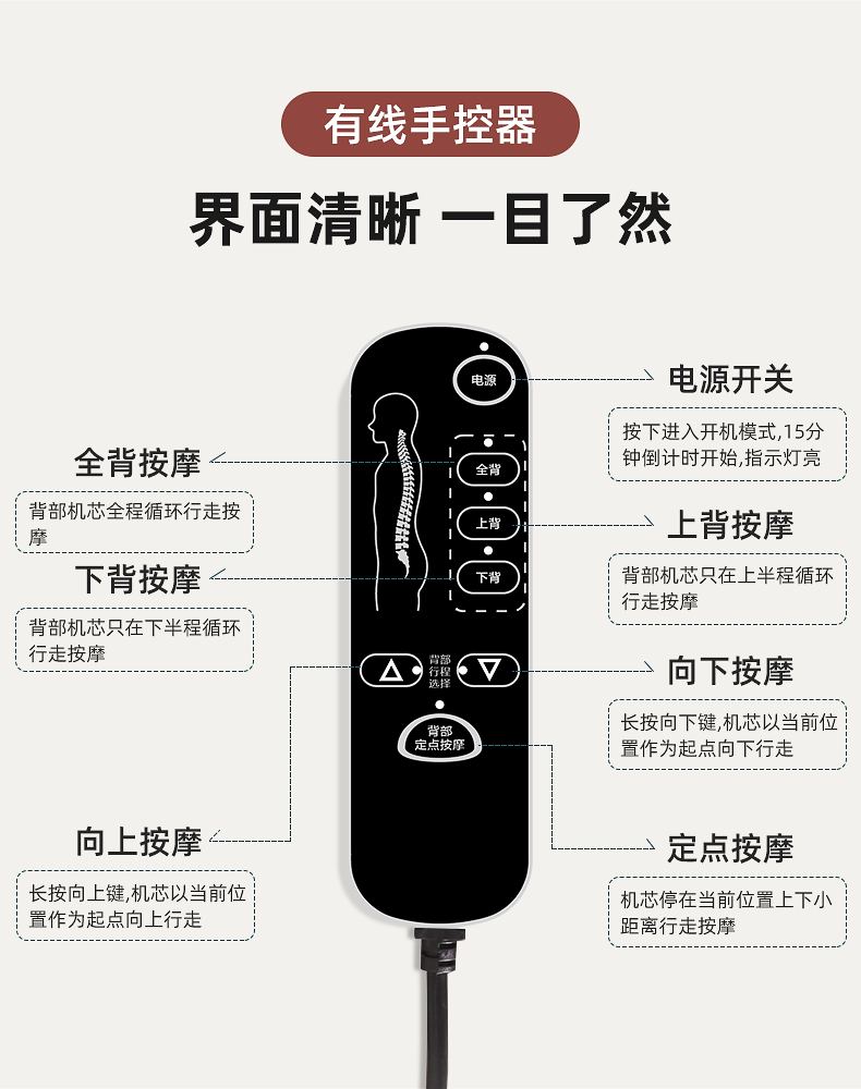背部:上來來回按摩,有2組共4個(gè)按摩頭。
