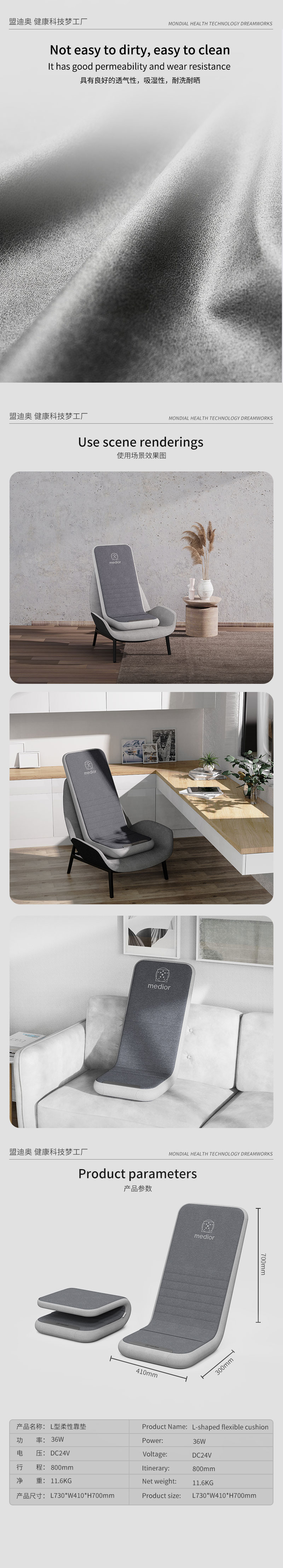 1、L型機芯結構,對折包裝縮小體積2、獨家專利柔性機芯3、力度三檔調(diào)節(jié),定點按摩,腰背按摩、臀腿按摩、全背按摩模式選擇4、背部行走揉捏,按摩區(qū)域加長到從肩膀到大腿;5、更加貼合不同款式的椅子整體可對折收納6、亞馬遜標準包裝尺寸